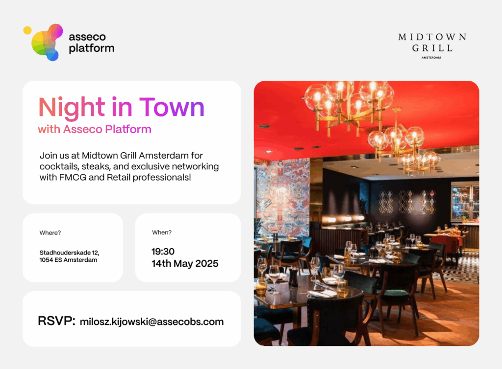 We are delighted to invite you to an exclusive networking dinner at Midtown Grill, located in the vibrant heart of Amsterdam. Enjoy a relaxed evening filled with premium cocktails, delicious steaks, and inspiring conversations with fellow FMCG and Retail professionals.